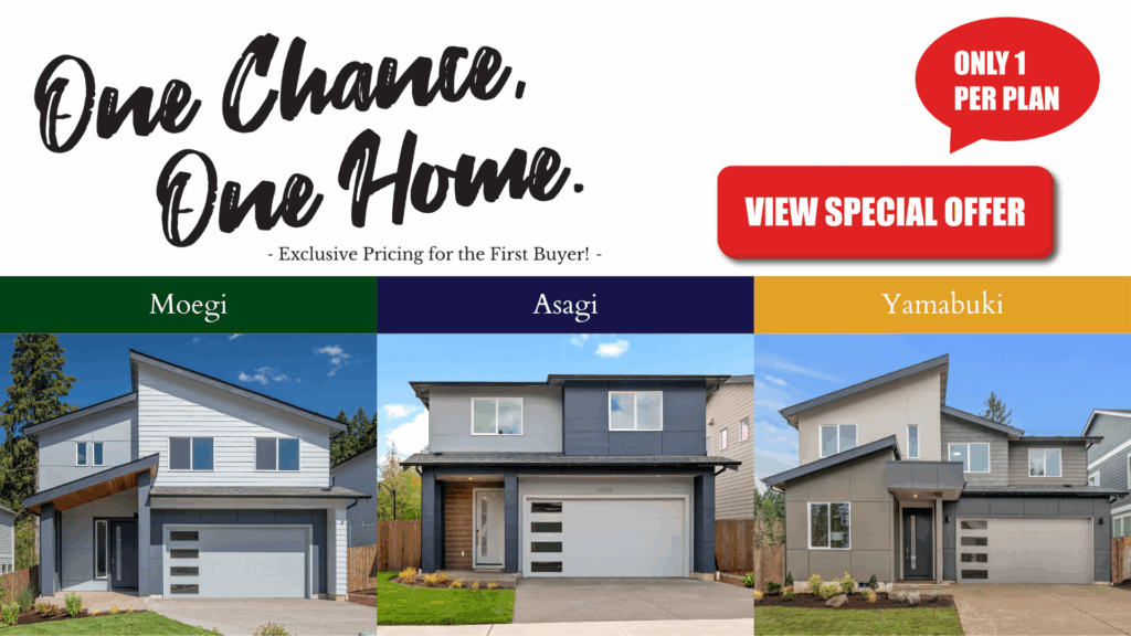 As part of a limited-time offer, we’re providing exclusive pricing on three floor plans. Each plan—Moegi, Asagi, and Yamabuki—is available at this price for one buyer only. This offer is available on a first-come, first-served basis and ends as soon as each plan is sold.
