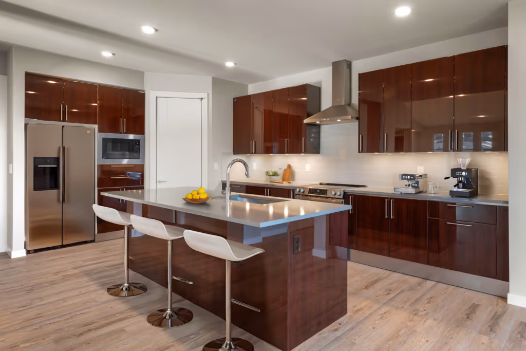 In-house contemporary design, award-winning energy efficient homebuilding and innovative products set Ichijo apart from other builders. Buyers are wowed by the piano finish cabinetry with pull-downs, built-ins, soft-close, under cabinet lighting and more. The cool contemporary interior doors have magnetic door stops and metal inlay, giving the homes a distinctive look.
