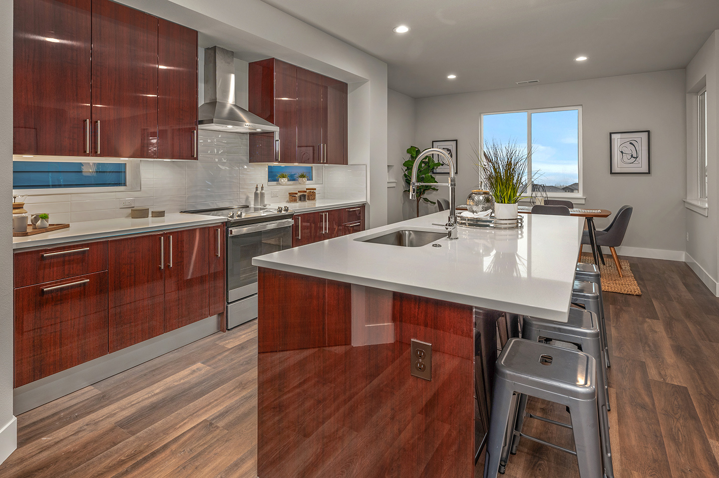 In-house contemporary designs, award-winning energy efficient homebuilding and innovative products set Ichijo apart from other builders. Buyers are wowed by the piano finish cabinetry with pull-downs, built-ins, soft-close, under cabinet lighting and more. The cool contemporary interior doors have magnetic door stops and metal inlay, giving the homes a distinctive look.