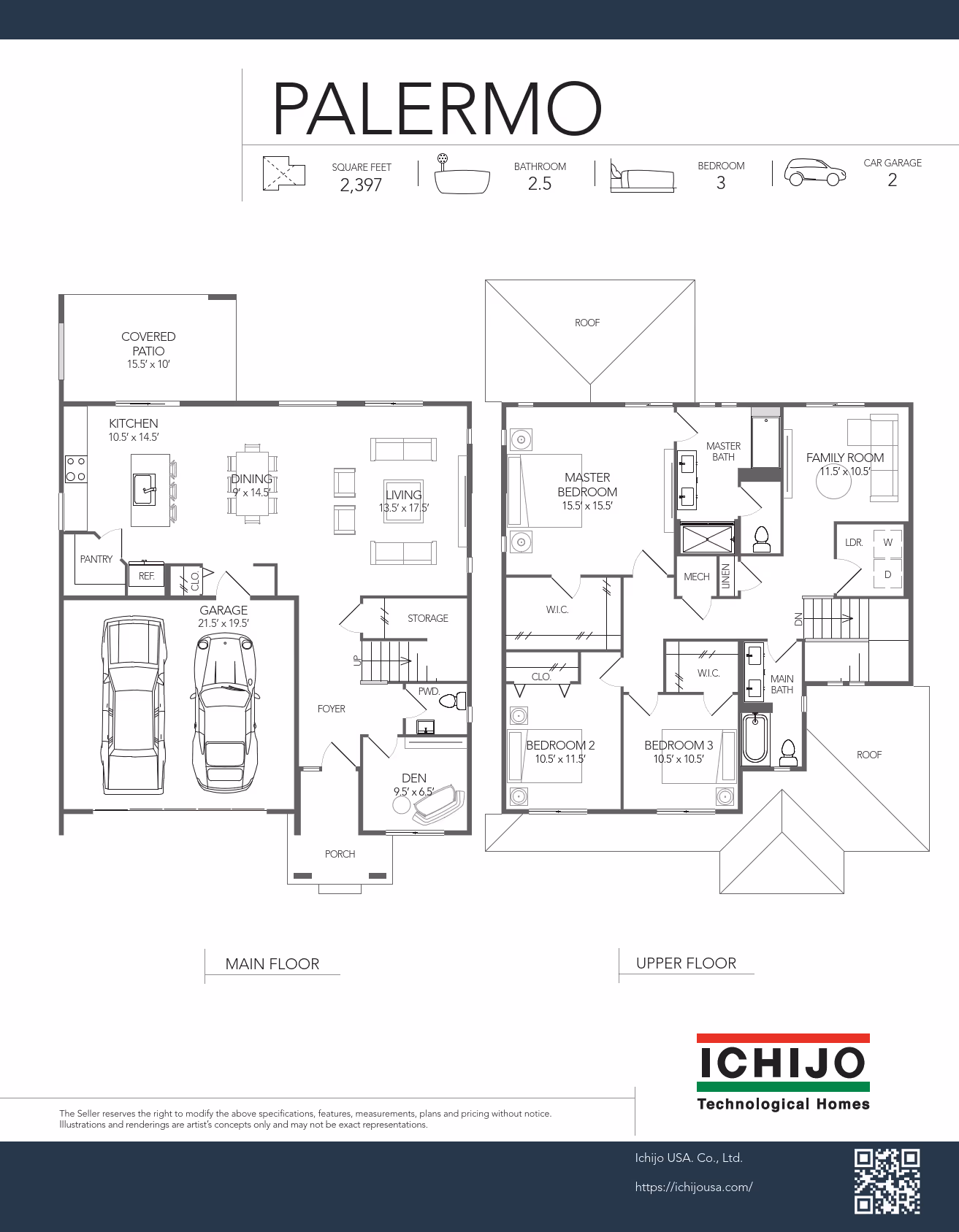 At just under, 2,400 square feet, the Palermo, makes good use of space. The Kitchen features an island and large pantry, great for extra storage. Adjacent to the Kitchen, you will find a spacious covered patio perfect for BBQ’s and dining Al Fresco! Additionally, the generous Living and Dining Rooms offer many options for get togethers. Working from home? There’s an office on the main level that gives you plenty of privacy. On the second level, you will find a spacious Master Suite with a large walk-in closet as well as two additional bedrooms, a bathroom, Laundry Room and a Family Room. Welcome home!