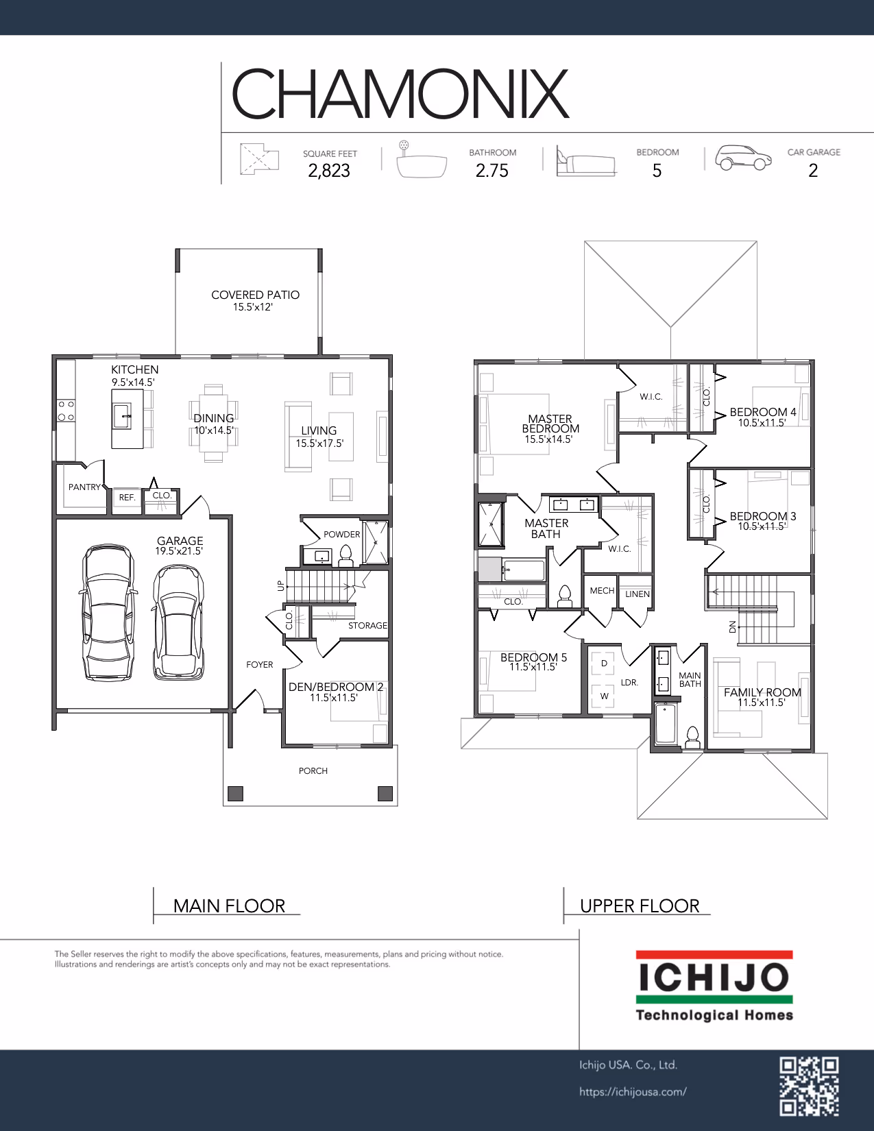 The 5-bedroom Chamonix plan gives many options for families, guests or those working from home needing multiple offices! The main level includes a bedroom with an adjacent bathroom and a spacious living room, dining room and kitchen with easy access to the covered outdoor living. Upstairs you will find 4 bedrooms including a large master suite with two walk-in closets. The family room on the second level offers privacy away from the bedrooms and a great media option. Welcome home!