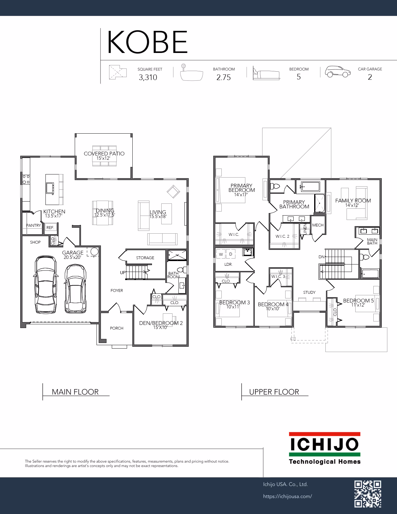 The 5-bedroom Kobe plan has room for everyone! Including on the main level is a large bedroom or office with an adjacent bathroom. The spacious kitchen has lots of counter space, including a 4-person island and a generous pantry. Upstairs won’t disappoint either, with a Master Suite with TWO walk-in closets! There’s also a large family room as well as three additional bedrooms, a bathroom and a laundry room conveniently located on the second level. Welcome home!