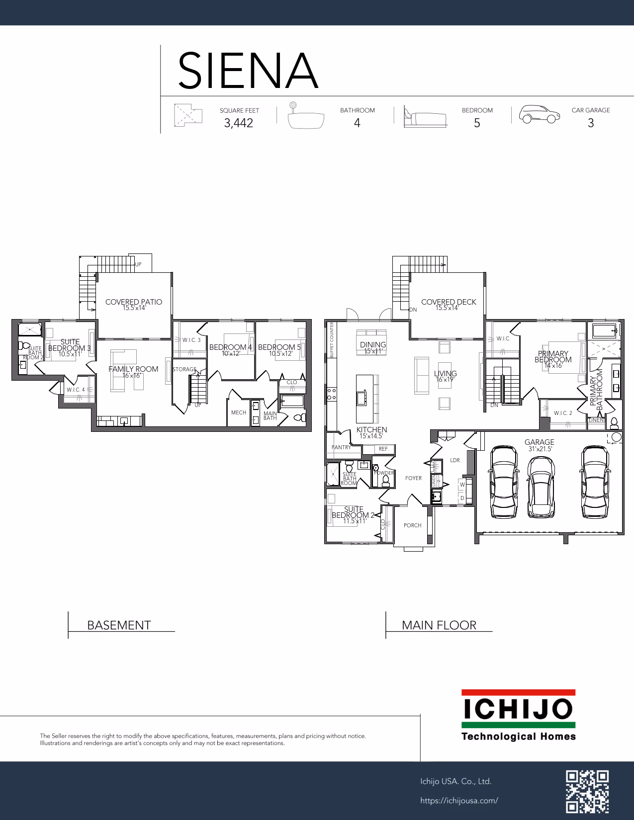 Named after the Italian city in Tuscany, the Siena plan has potential multigenerational living opportunities with a daylight basement featuring a kitchenette, a family room, outdoor covered access and a suite with walk-in closet in addition to two more bedrooms and a full bathroom. On the main level, there is truly one level living with the 3-car garage, large Primary Suite with two walk-in closets as well as a Japanese style bath. The spacious kitchen, dining and living room are perfect for entertaining with easy access to the enormous, covered deck. In addition, there is an additional guest suite as well as a large laundry/mud room with lots of storage.