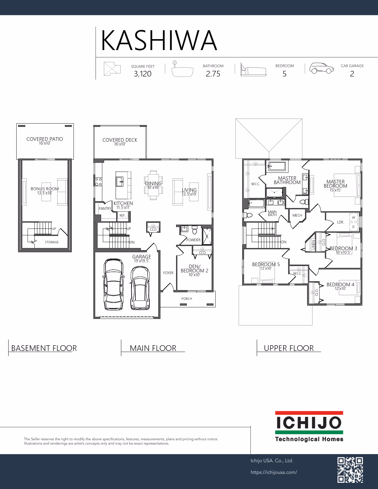 The Kashiwa plan includes a main level bedroom with an adjacent bathroom, perfect for guests or in-laws who prefer no stairs. The open living/dining and kitchen is perfect for entertaining with easy access to the covered outdoor living and dining space. There’s also a bonus room in the basement with loads of storage and a spacious covered patio. On the second level, there is the laundry room, bathroom and 4 bedrooms including a Primary Suite with a large 5-piece bathroom and spacious walk-in closet.